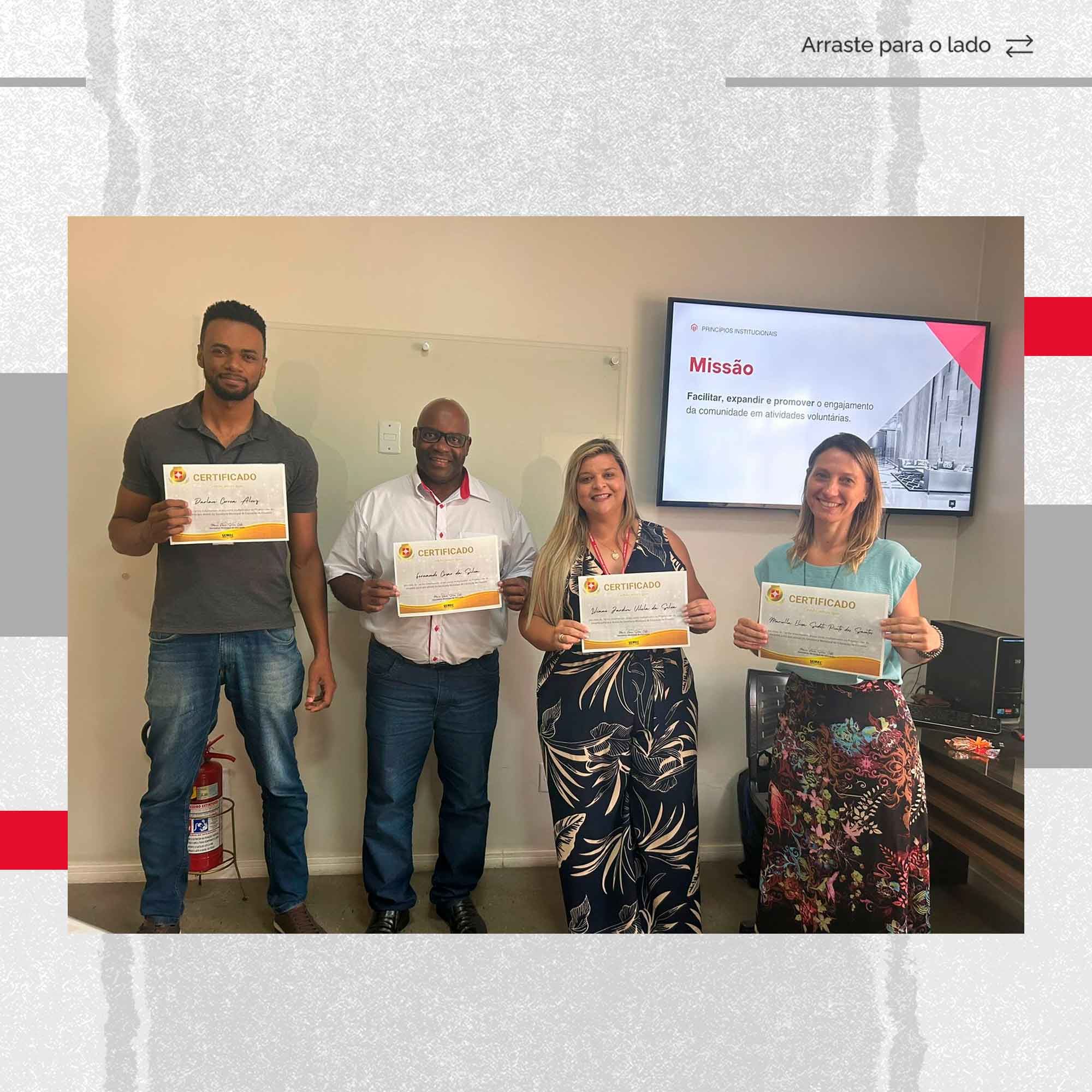 Os voluntários e verdadeiros pilares foram homenageados e receberam o certificado por suas contribuições significativas ao longo do ano, especialmente no projeto “Líder do Amanhã”.